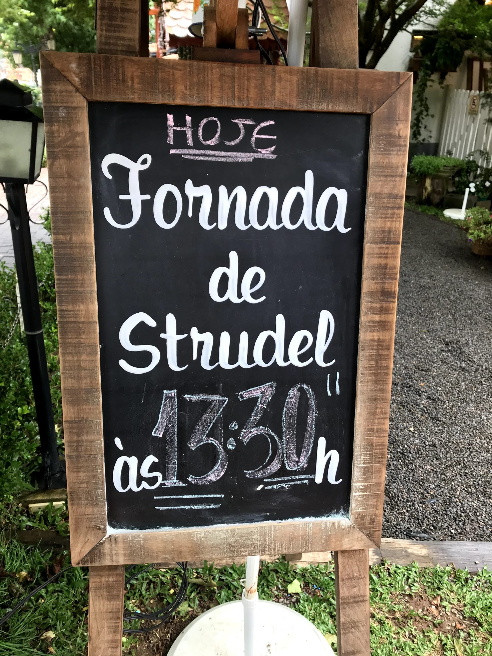 Visitamos todas as lojinhas e provamos muitos queijos, geleias, doce de leite mineiro e não conseguimos nem almoçar, ao invés disso, um pouquinho antes de ir para o hotel, resolvemos esperar pela fornada das 13h30 de Strudel, o famoso doce da “Casa do Strudel”.